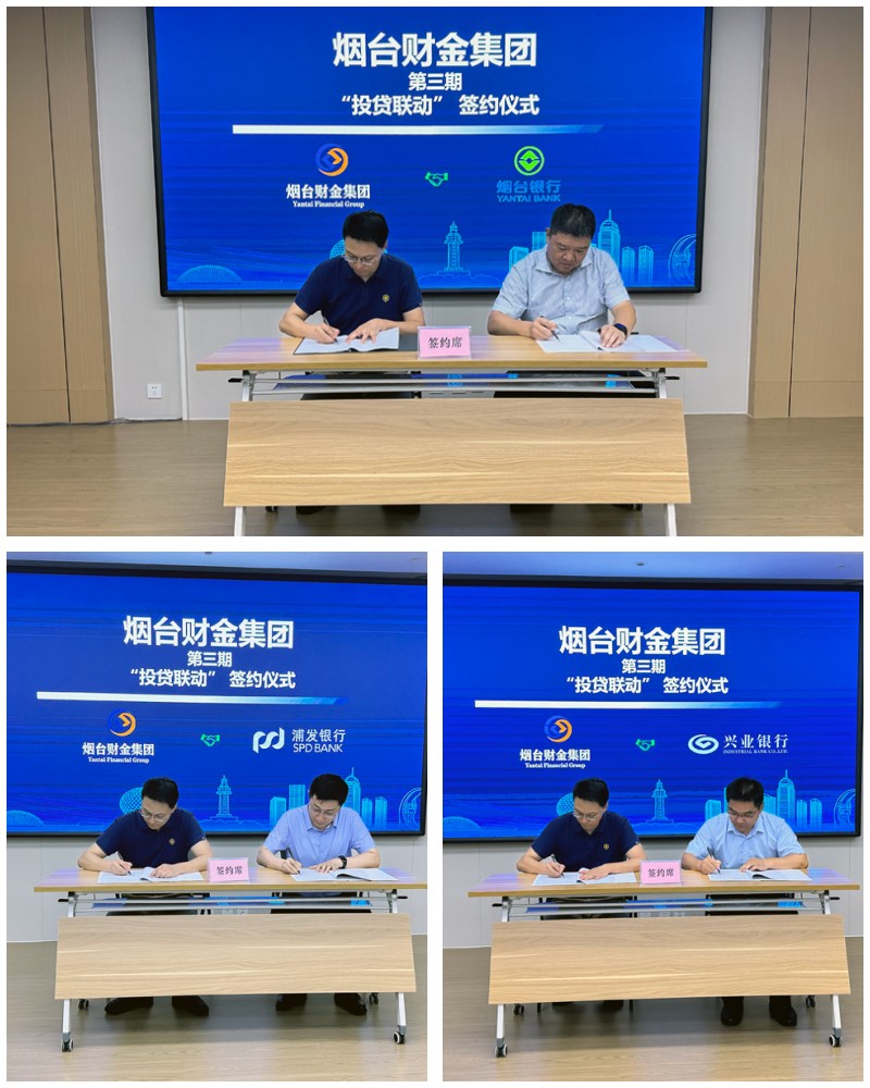 分享結(jié)束后,集團(tuán)總經(jīng)理李輝分別與煙臺(tái)銀行黨委書記曾勇、興業(yè)銀行煙臺(tái)分行行長(zhǎng)張秀鋒、浦發(fā)銀行煙臺(tái)分行副行長(zhǎng)田冰簽訂了戰(zhàn)略合作協(xié)議。