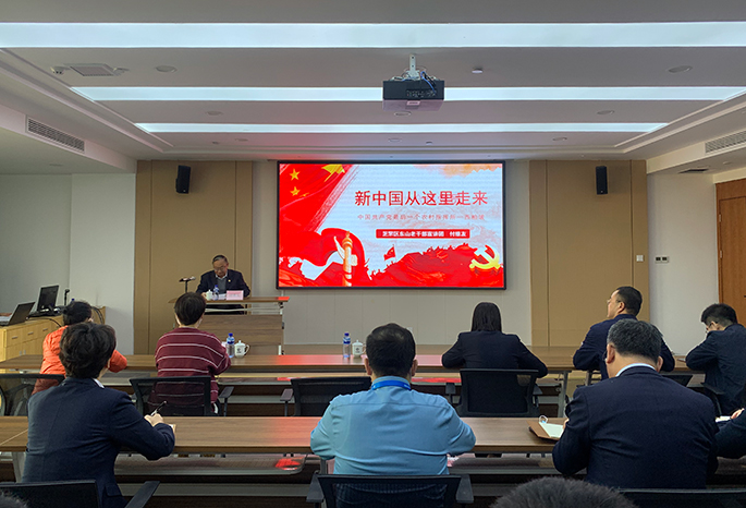付維友同志圍繞中央工委進(jìn)駐西柏坡、全國土地會議在西柏坡召開、黨中央在西柏坡指揮三大戰(zhàn)役、中國共產(chǎn)黨七屆二中全會在西柏坡召開等4個方面進(jìn)行了詳細(xì)講解。